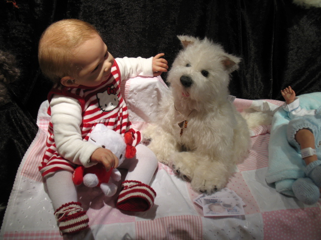 Am 1. Ausstellungstag durften die Beiden dann mit. Anfangs blieben ja sie auch gaaanz brav beim Tisch sitzen, aber dann siegte doch ihre Neugier und irgendwie schafften sie es, auszubüxen. . .